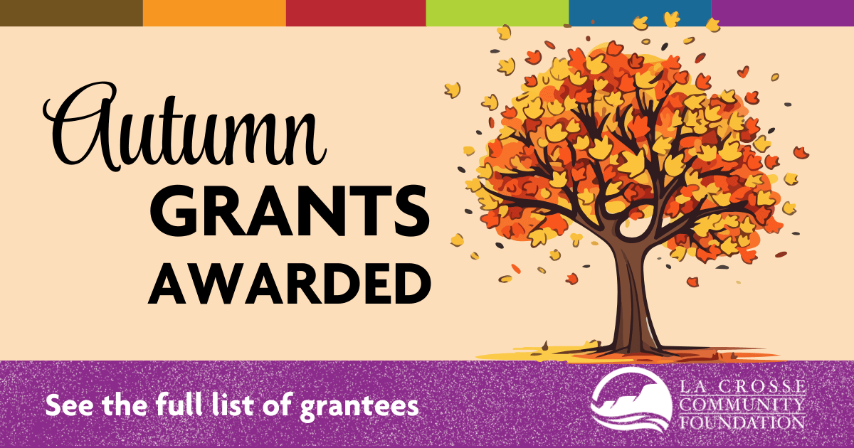 As the temperatures get colder, we have the opportunity to welcome autumn and a season of gratitude. The end of 2023 is near, and we are excited to share La Crosse Community Foundation awarded $293,268 in quarter four. When you review the full list of grants below, we know you will agree with us that our community has many programs, organizations, and initiatives that we are thankful for. Because of the passionate and generous donors, grant committee and board members, we think it’s easy to find a multitude of reasons to be grateful today, tomorrow, and forever.